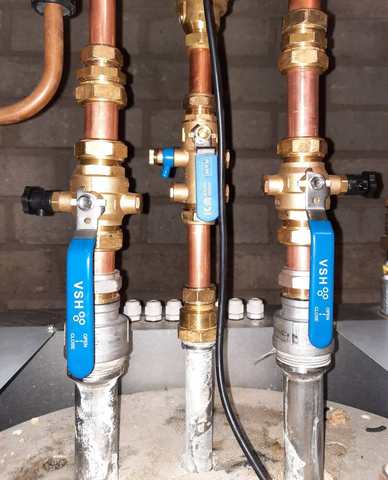 Koudwater verdeler, stopkranen en reduceerventiel vervangen