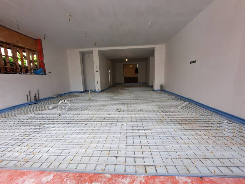 Woonkamer vloer uitshachten voor plaatsen geïsoleerde vloer met vloerverwarming