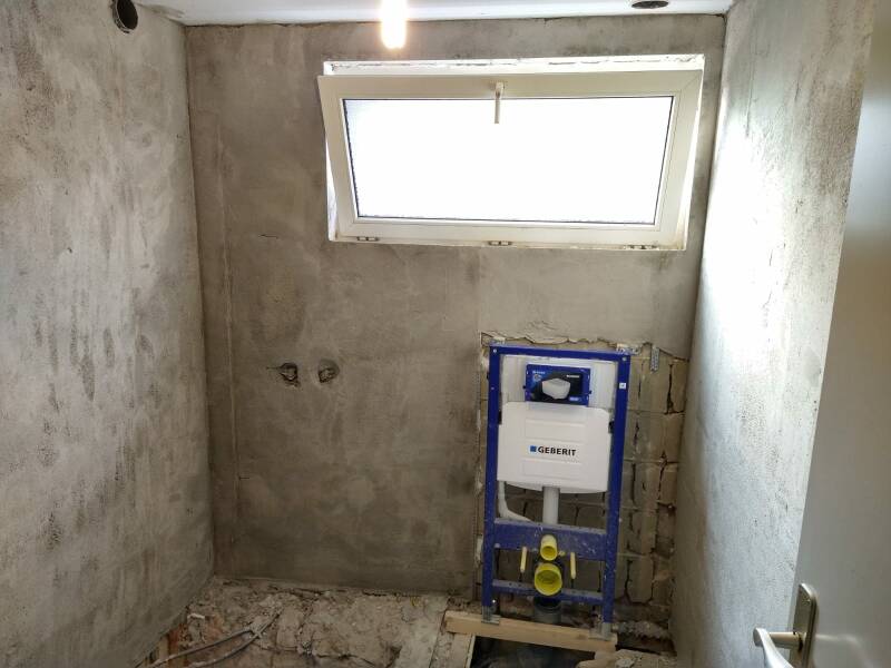 Geberit inbouwreservoir gemonteerd in metal stud voorzetwand